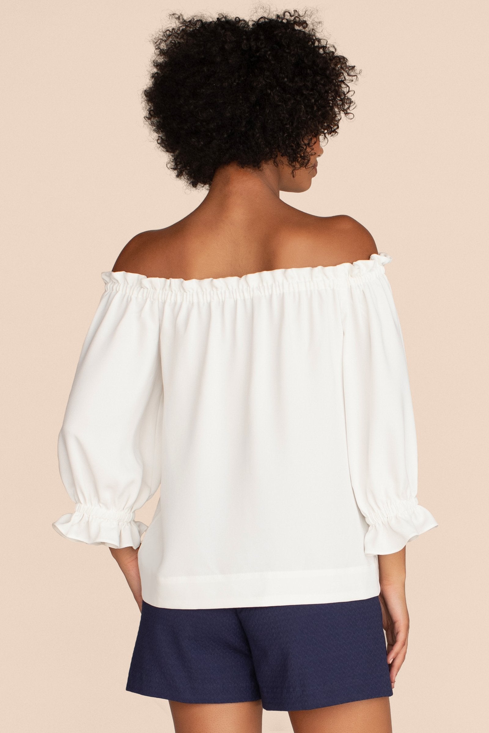 - Off-the-shoulder neckline with elastic at shoulders and back
